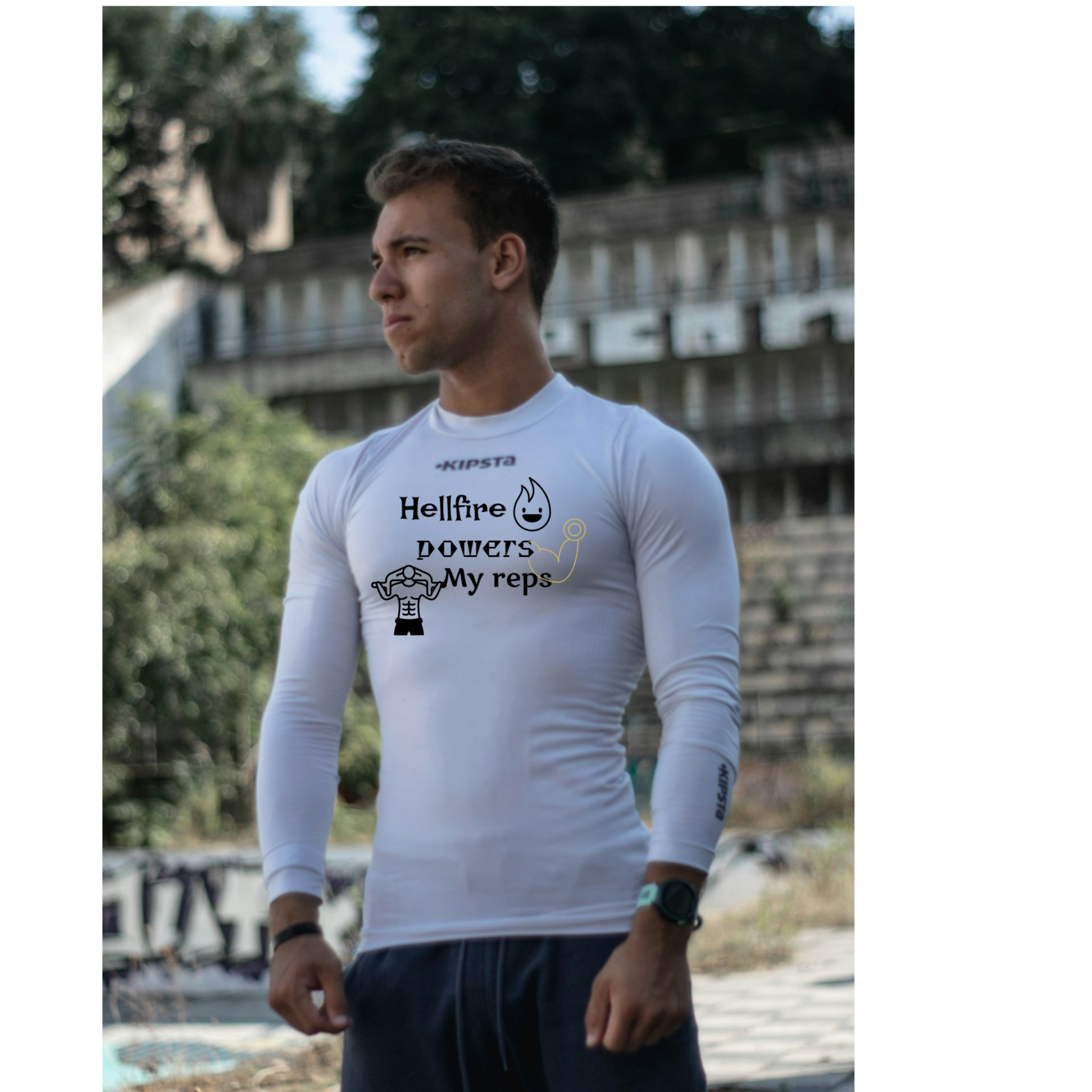 Durable, high-resolution “Hellfire Power My Reps” graphic